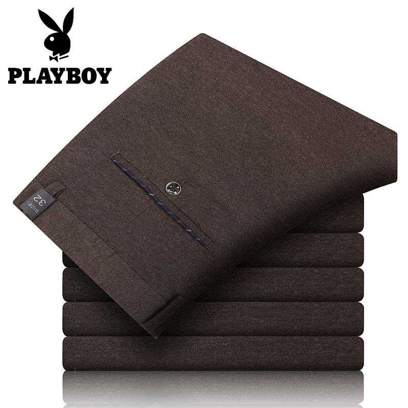 Playboy casual pants men's autumn and winter middle-aged warm dad trousers winter plus velvet thick men's long pants