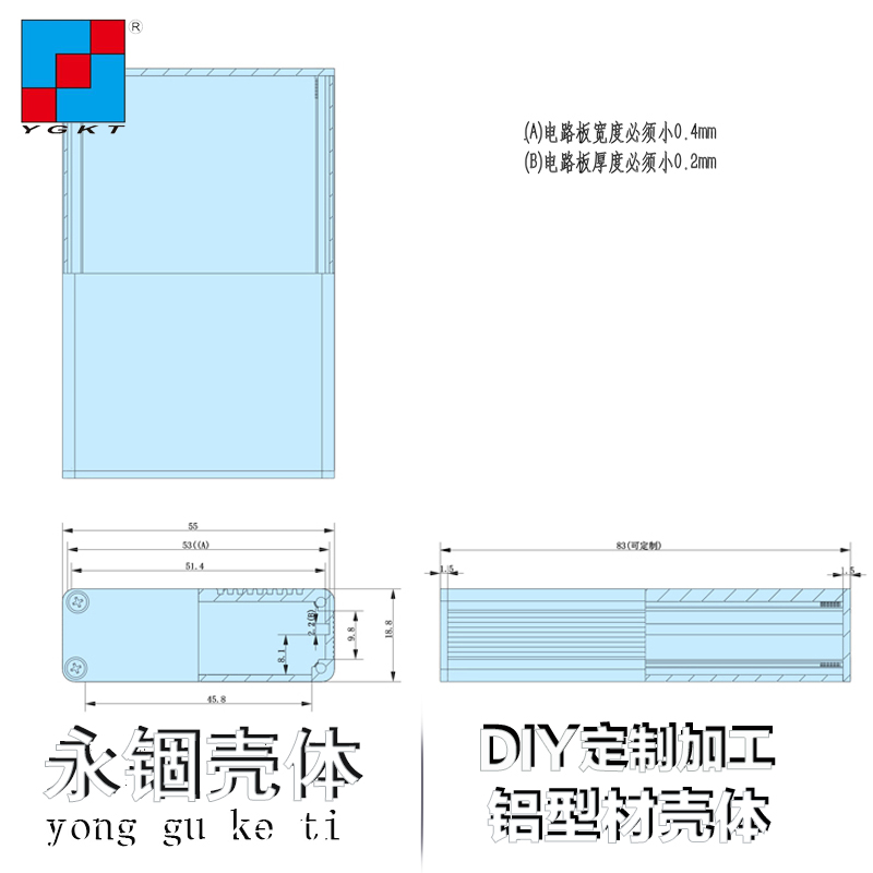 55 * 19 customized aluminum alloy experimental test instrument meter aluminum housing aluminum extrusion material industrial control circuit board junction box