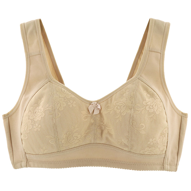 Mother Pure Cotton Underwear Medium Aged Cloth Bra No Steel Ring Small Vest Grandma Thin and breathable three-button full cotton bra