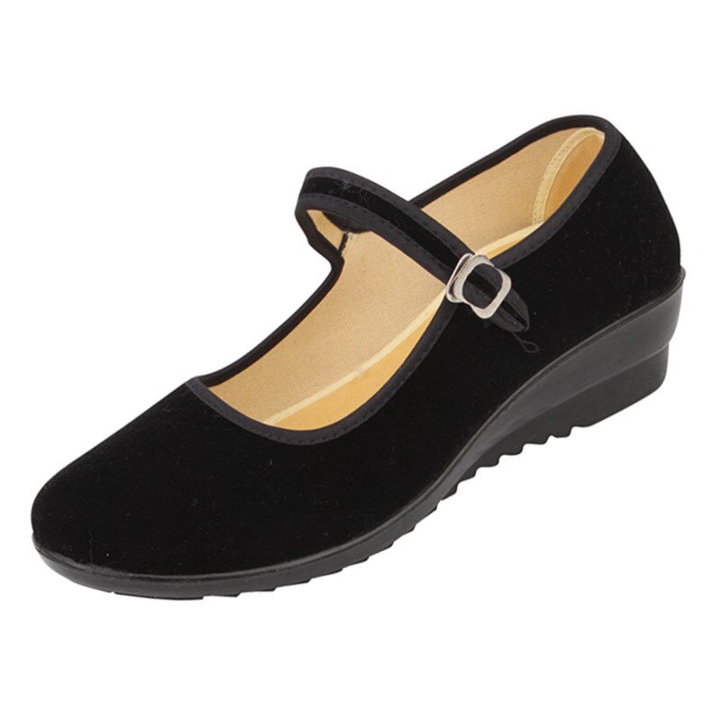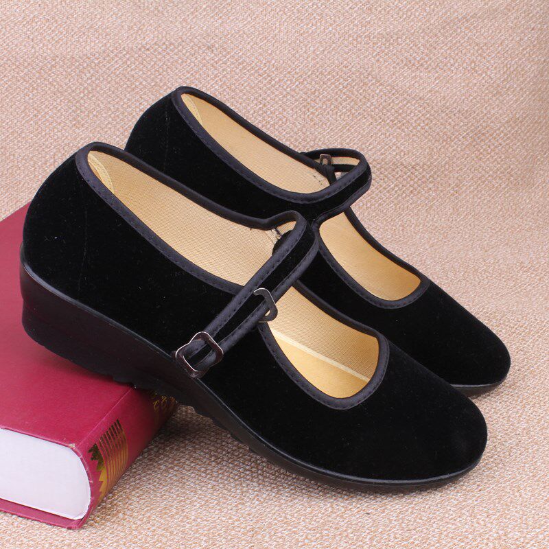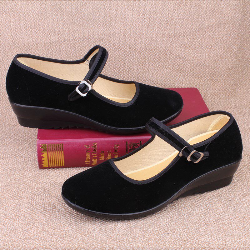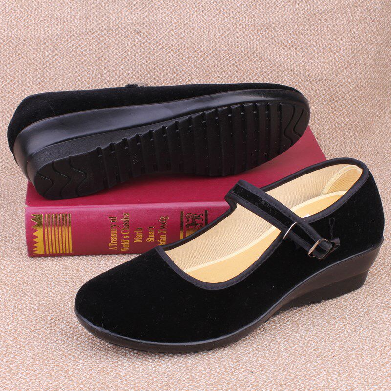 Old Beijing cloth shoes women's wedge heel black work shoes thick bottom black belt women's cloth shoes large size women's shoes 41-43 large
