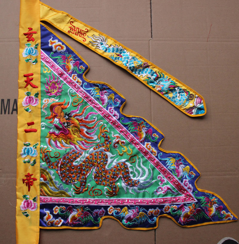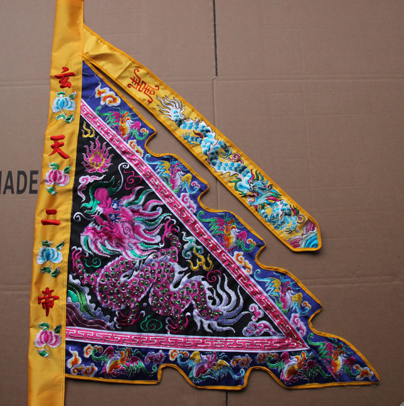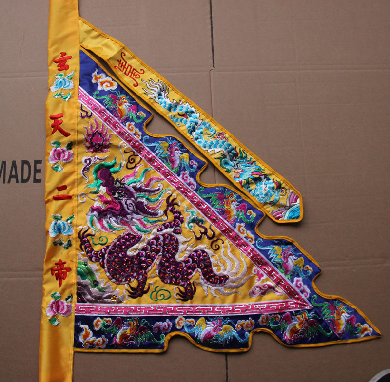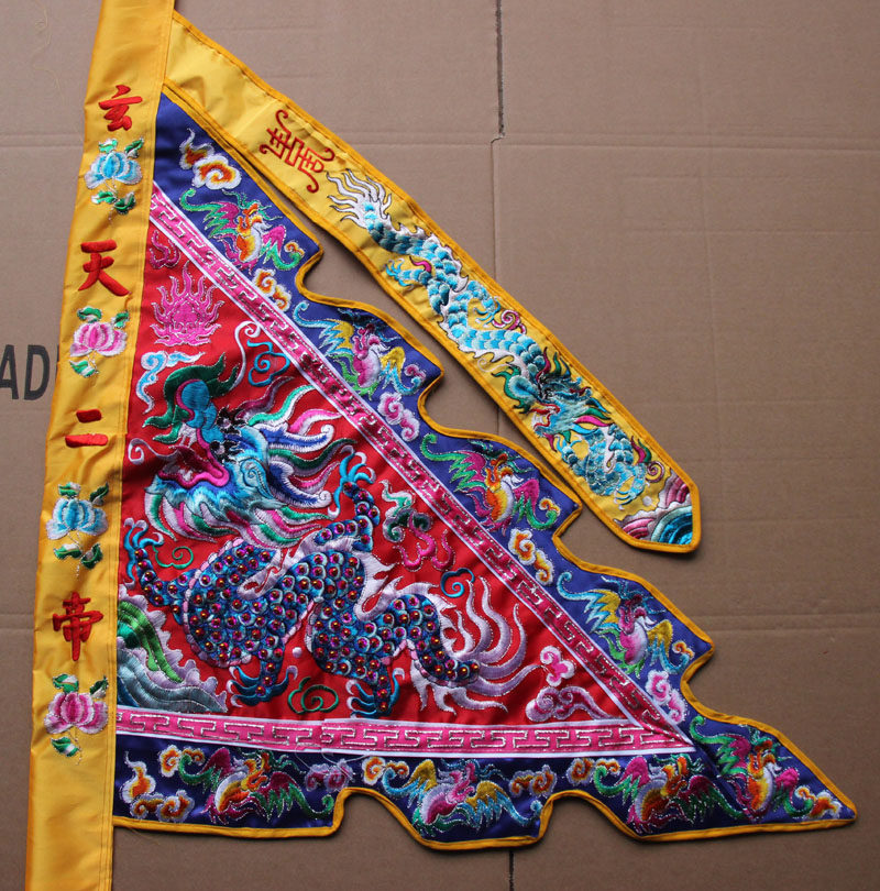 Tianlong embroidery five-color flag three-scale double-sided dragon five-party flag sedan back five-peak flag embroidery flower flag tube can embroider words