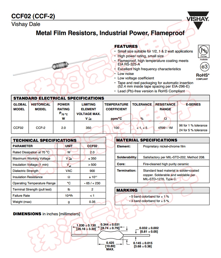 Imported from the United States 10K 2W DALE CCF2 small volume metal film resistor