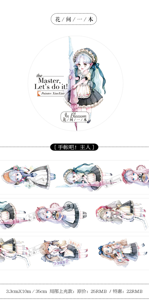 (Split into the whole roll) Huajian Yiben Pocket Bar Master (Partially Glazed) Washi Tape
