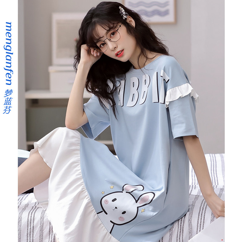 Sleeping Dress Lady Summer Pure Cotton Short Sleeve Thin cute pyjamas home Residence Dress Mid girls Summer full cotton