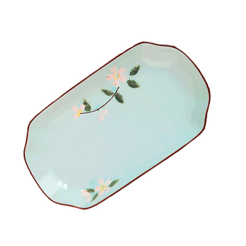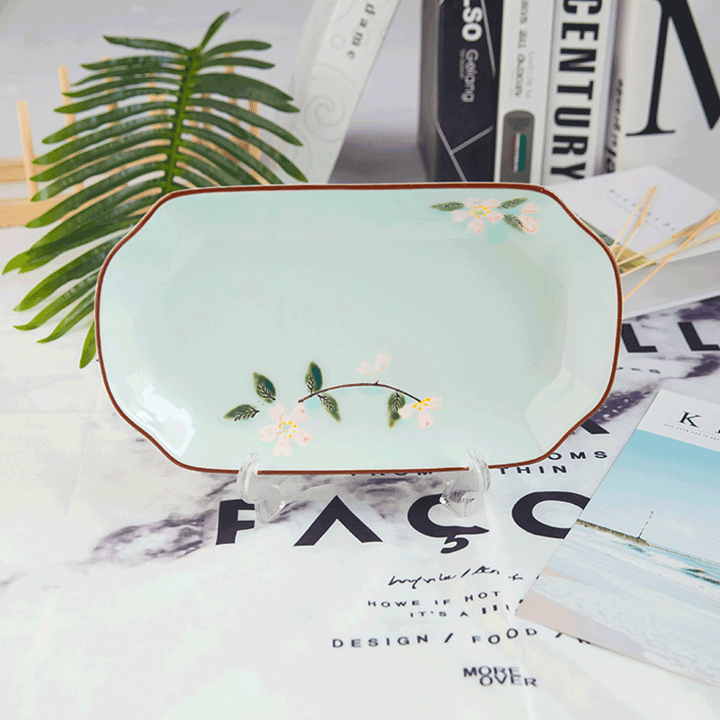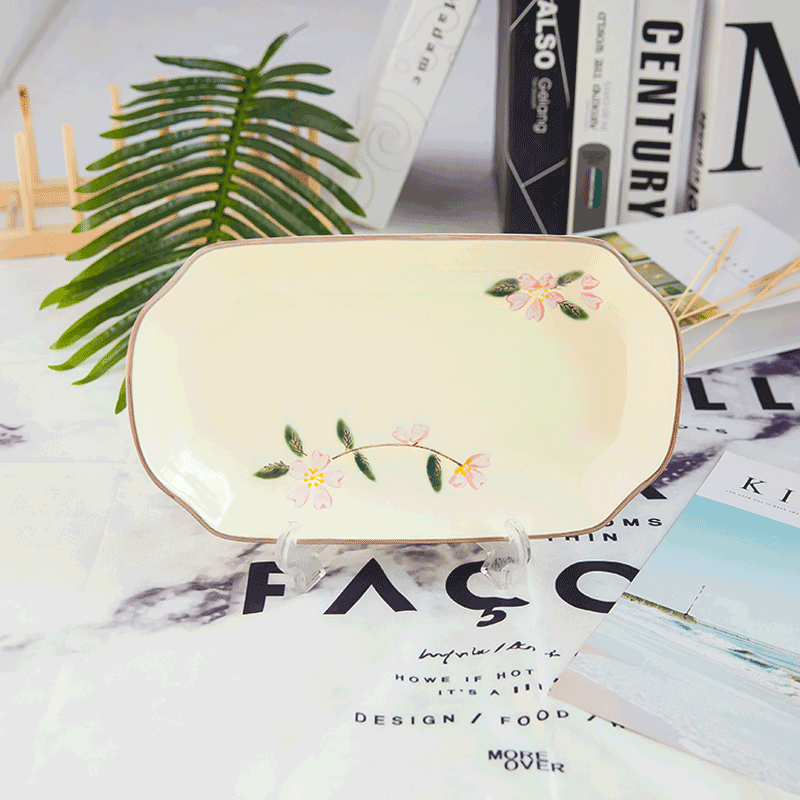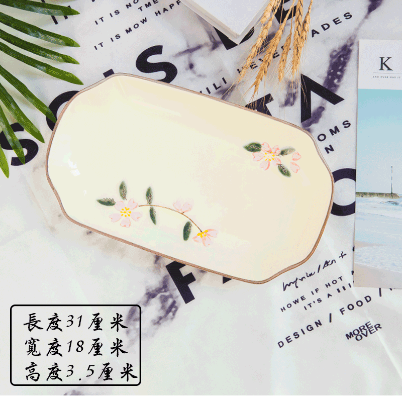 Fresh and elegant 12-inch fish plate 16-inch food for the sky fish plate 1 pack 12-inch food for the sky long square binaural fish plate 1 pack for the pastoral scenery fish plate one pack