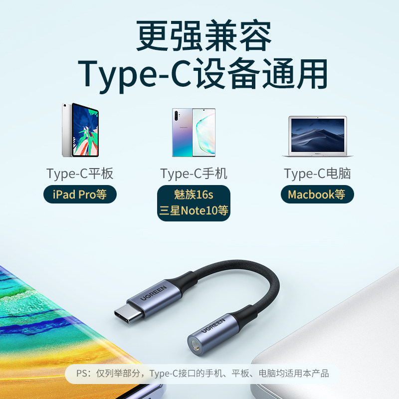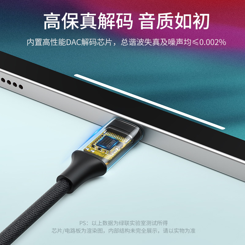 Green Union headphone adapter typec turn 3 5 headphone port Applicable hammer nut pro line mix2 note3 Huawei p20 mate30 Xiaomi 68 headphone transfer line