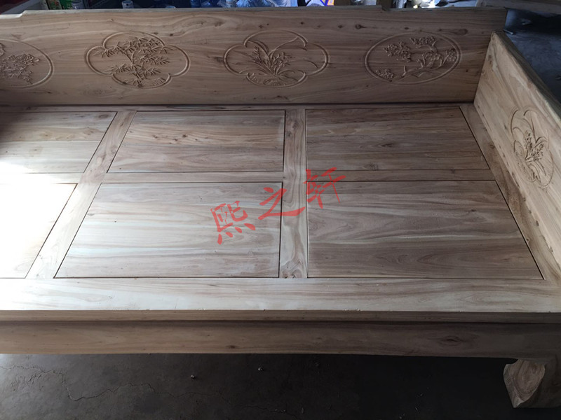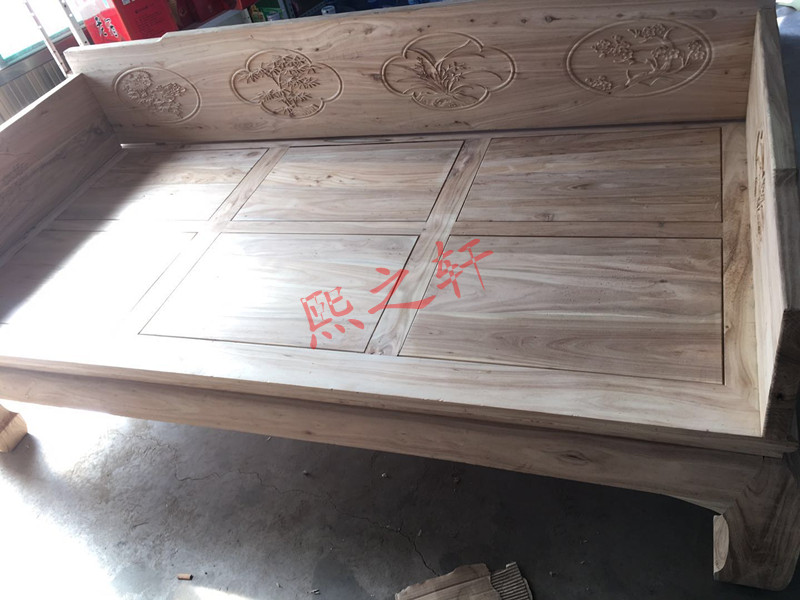 Northern old elm wood Wooden Bed Solid Wood Carved flower Living room Chinese style sofa bed and tatami bed Remain bed elm wood furniture