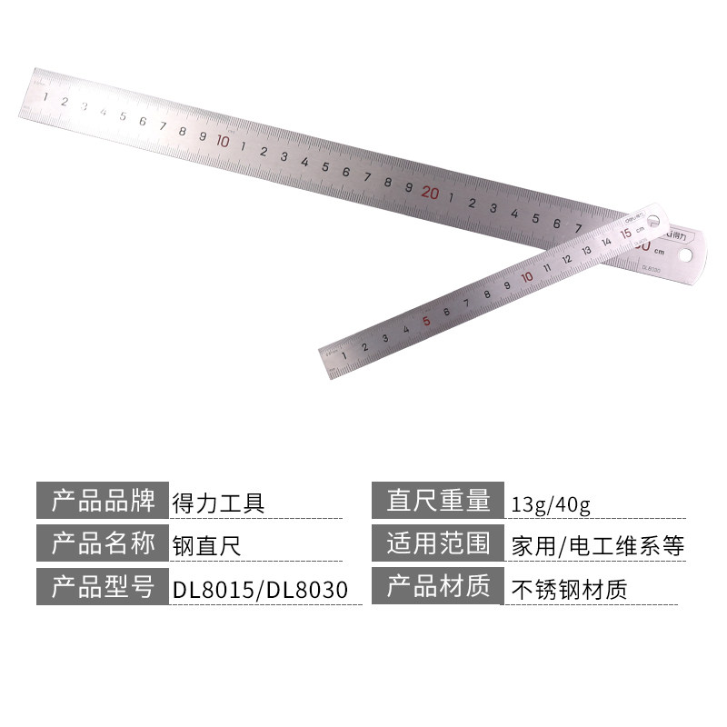 Able tool stainless steel steel ruler 15cm 30cm 20cm steel sheet ruler graduated scale DL8015 8030