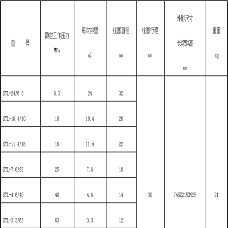 SYL-7.6 25SYL-4.6 40SYL-3.3 63