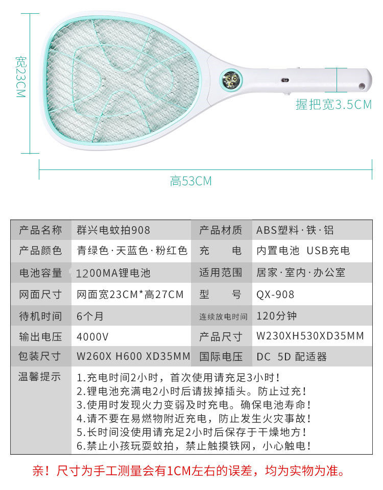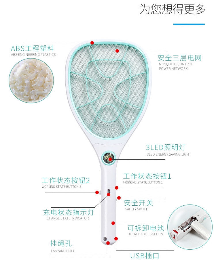 Household electric mosquito swatter rechargeable lithium battery 18650 strong safety multifunctional fly swatter USB charging