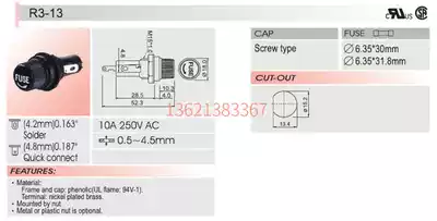 Taiwan new SCI fuse holder R3-13A 6*30 fuse box 10A250V