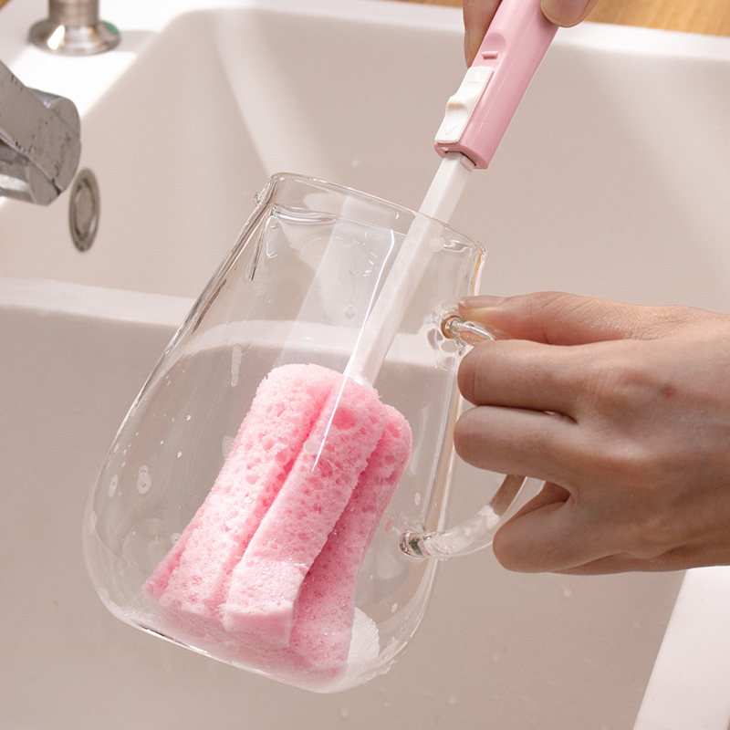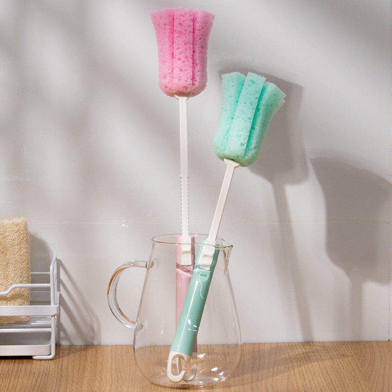 Japan Wash Cup Brush Long Handle Telescopic Sponge Brush Wash Cup Brush Insulation Cup Brushed Milk Bottle No Dead Angle Cleaning Brush
