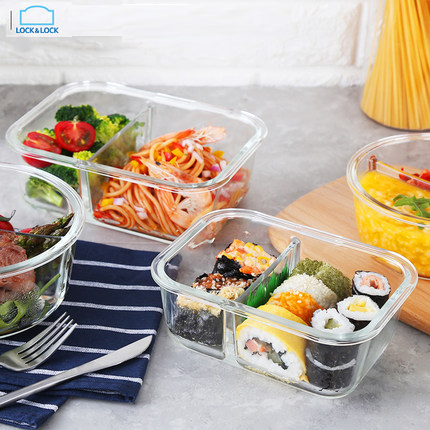Lock lock glass lunch box partition Microwave oven large lunch box Heat-resistant glass sealed lunch box LLG447C