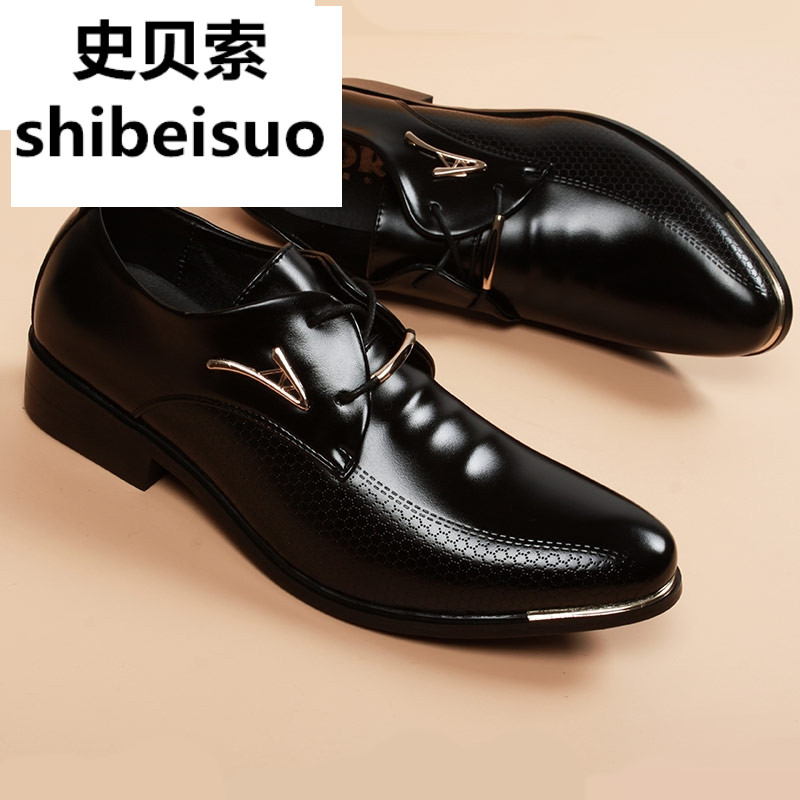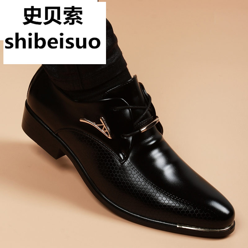 Episo spring men's business positive dress with heightening leather shoes Young Inn Korean version Trend pointed lace genuine leather