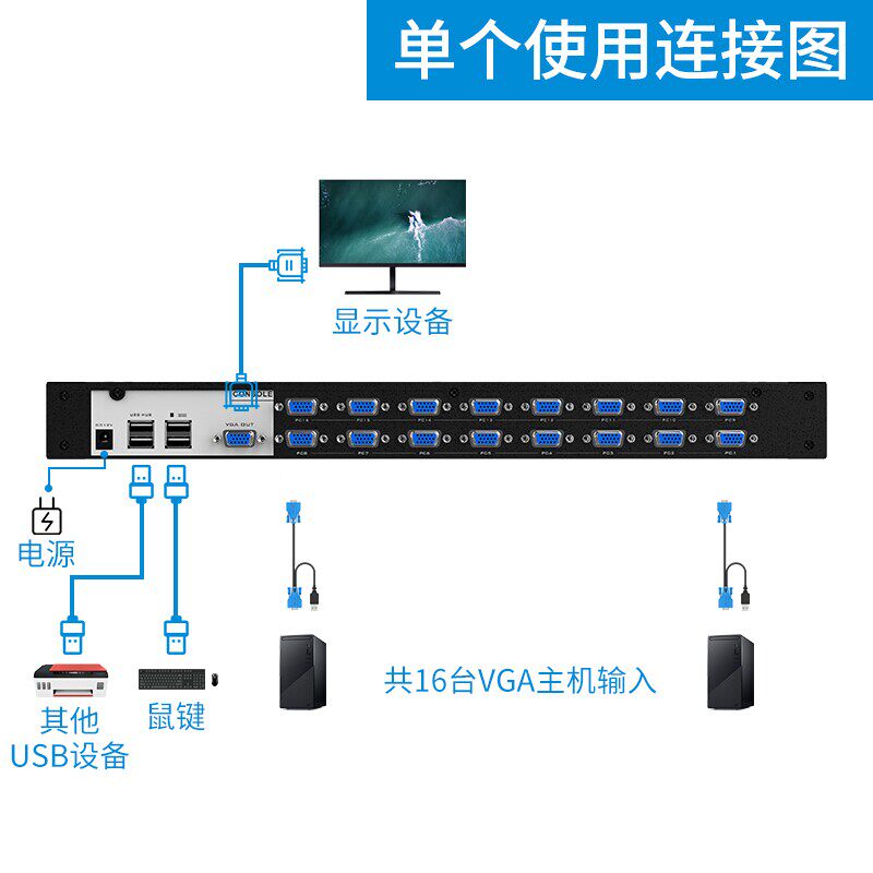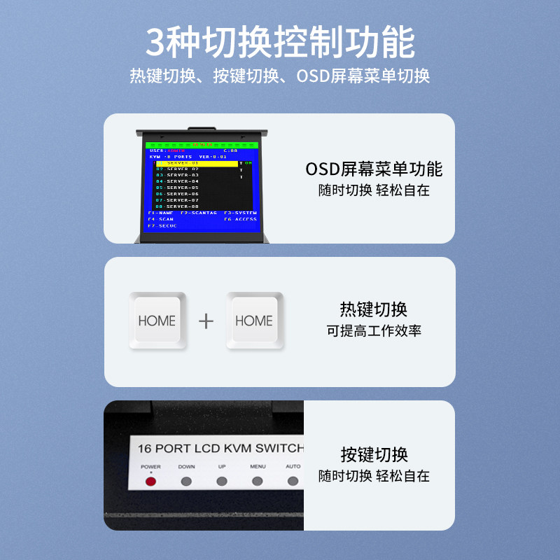 Maituo Vmoments MT-1916UL 16-mouth KVM switcher with 19 inch screen 16 in 1 out of room management server computer sharing USB keyboard Mouse Mouse display Four-in-one rack