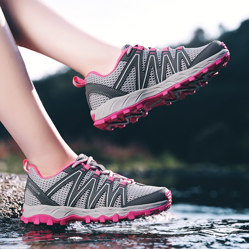 Climbing Shoes Men's Outdoor Breathable Abrasion Resistant Mesh Surface Sports Hiking Shoes Spring Ladies Low Bunch Lace Casual Tourist Shoes