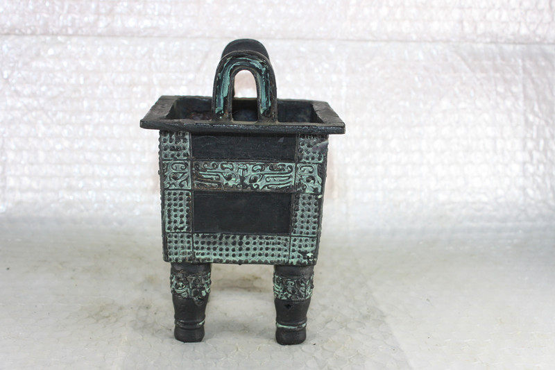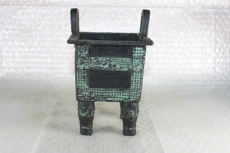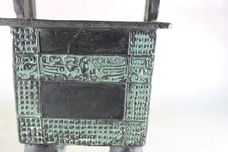 Antique Bronze Ware Shang Tripod Lost Wax Method Foundry Black Lacquer Tiger Rust Collection Canon
