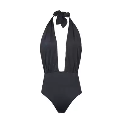 OceanMystery new black sexy hanging neck one-piece swimsuit female sexy soaking hot spring belly swimsuit