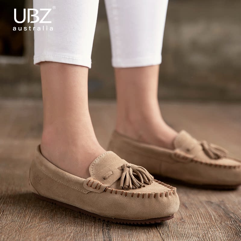 UBZ waterproof beanie shoes women's shoes 2022 new spring lazy one pedal tassel retro leather soft sole shoes