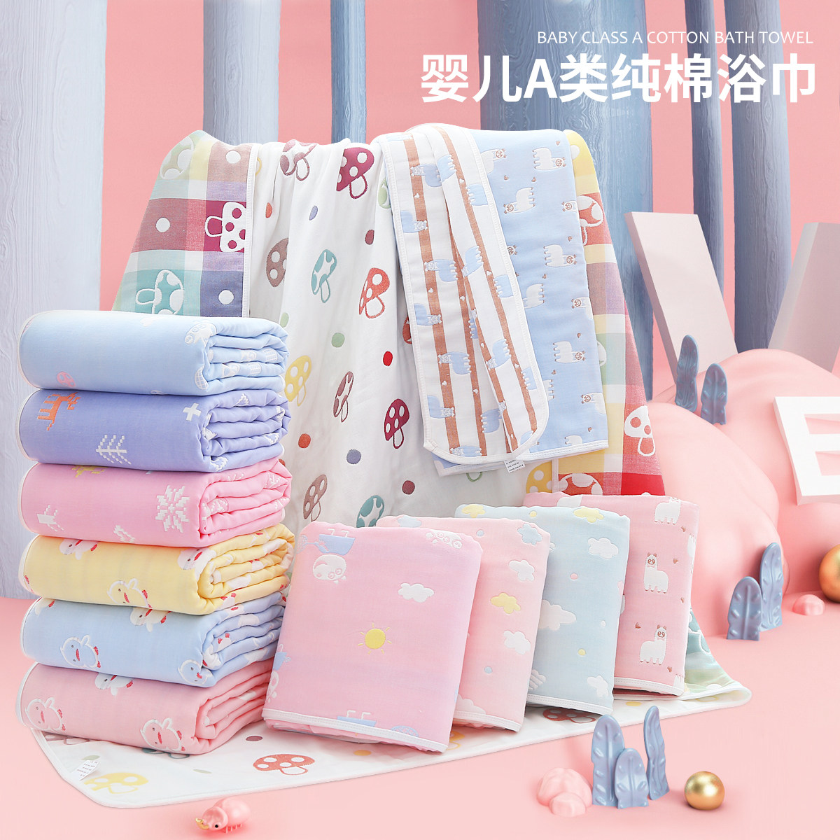 Baby bath towel Cotton super soft absorbent Children's baby blanket Newborn newborn bath large towel gauze quilt