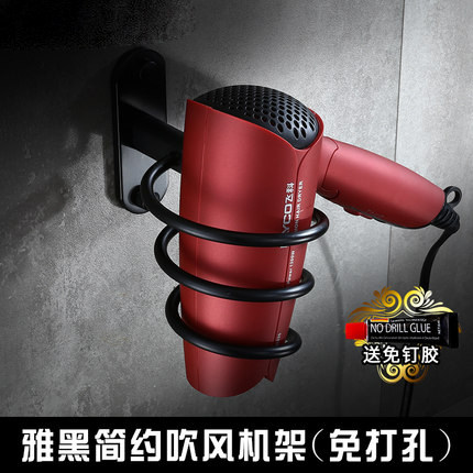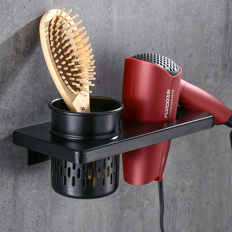 Space Aluminum Free Punch Retro Black Hair Dryer Rack Makeup Room hair dryer Shelf Contained Bathroom Wall-mounted Shelf