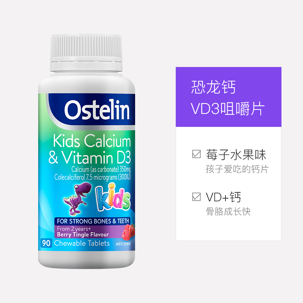 Australian Ostelin osterling vd3 dinosaur calcium 90 calcium carbonate tablets children calcium 2-13 years old chewable tablets