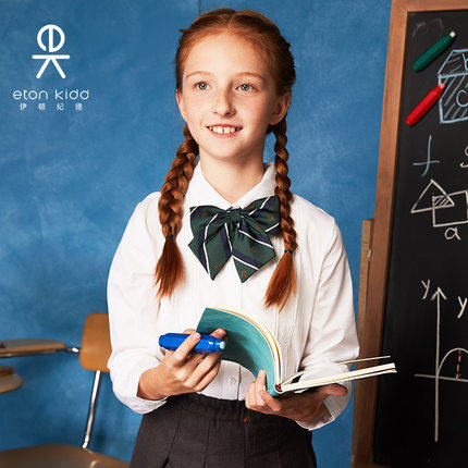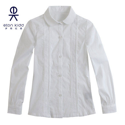 Eaton Gide school uniform children's white shirt Children's clothing college solid color spring and autumn girls long-sleeved shirt 09C201