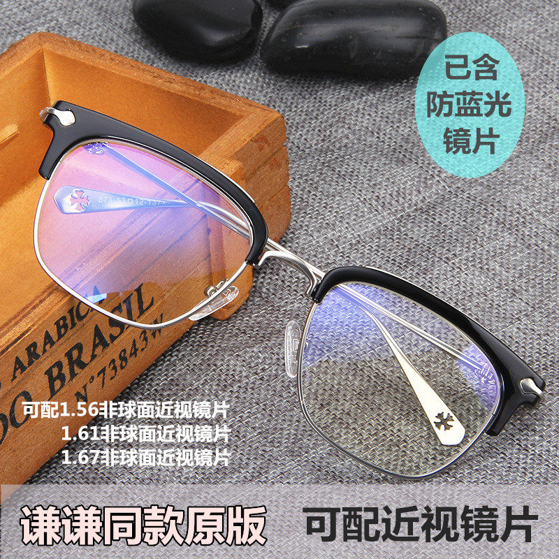 Xue Zhengqiang's Same Crow Glasses Frame Men Retro-Light Semiframe Ultra Light Anti-Blue Radiation Flat-view Frame