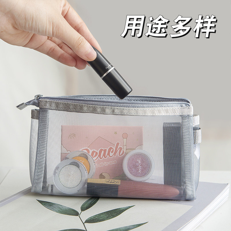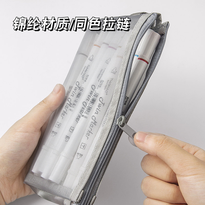 Three-year second class simple Japanese pen bag transparent mesh yarn ins tide large capacity stationery box student grid pencil case