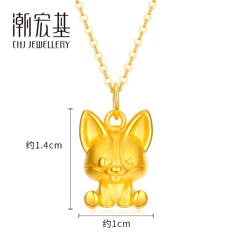 Chaohiro Kikochi sitting on a zodiac dog pendant gold 3D hard gold foot gold pendant male and female