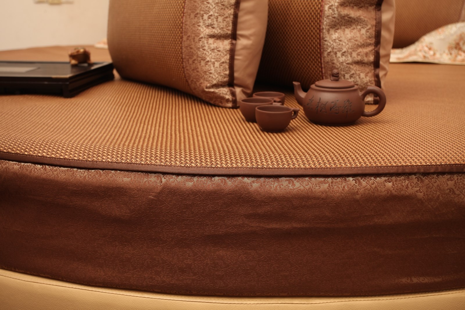 Omi Shao French ice rattan round mat, round rattan seat, round ice silk mat, bed cover, round bed three-piece set size custom