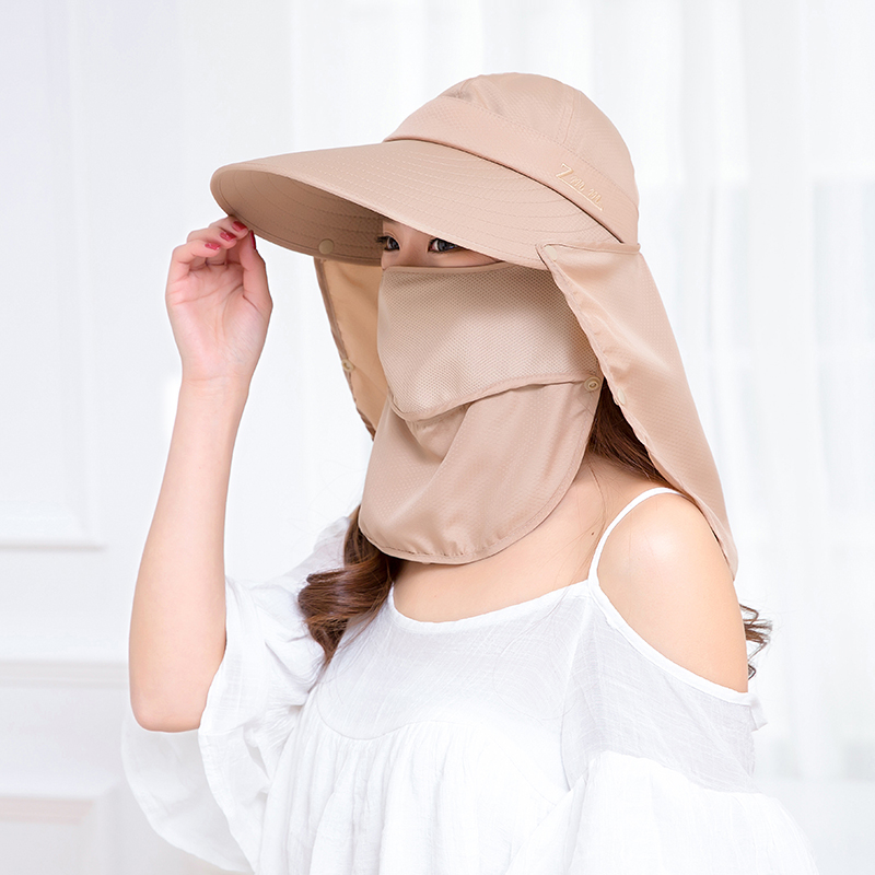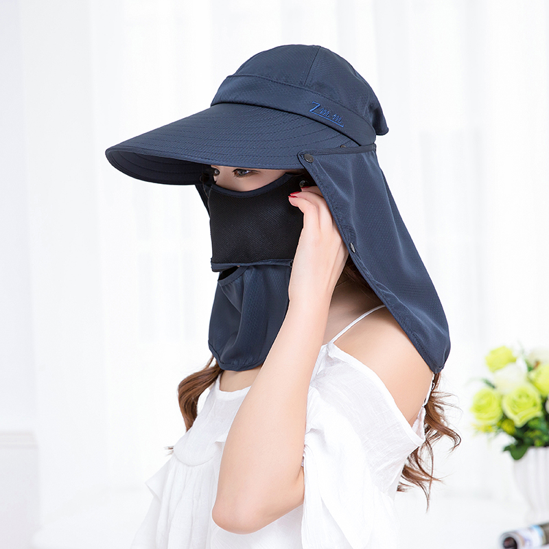 Summer sun hat shade facial anti-UV sun cap large ride cool hat with wind-proof rope