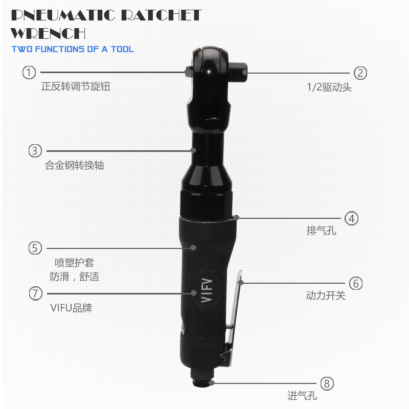 Japan VIFU industrial grade ratchet wrench torque wrench small wind cannon pneumatic tool car repair fast wrench