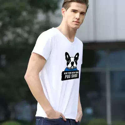 2018 New summer half-sleeve men's short sleeve T-shirt large size Korean version of slim print men's V-neck T-shirt