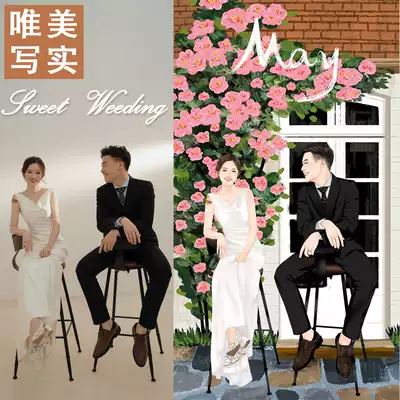 Beautiful wedding Live Photo Cartoon Cartoon please post logo design couple Q version Avatar wedding invitation hand painted