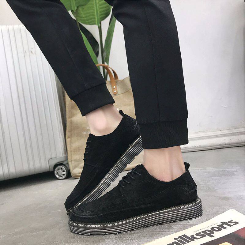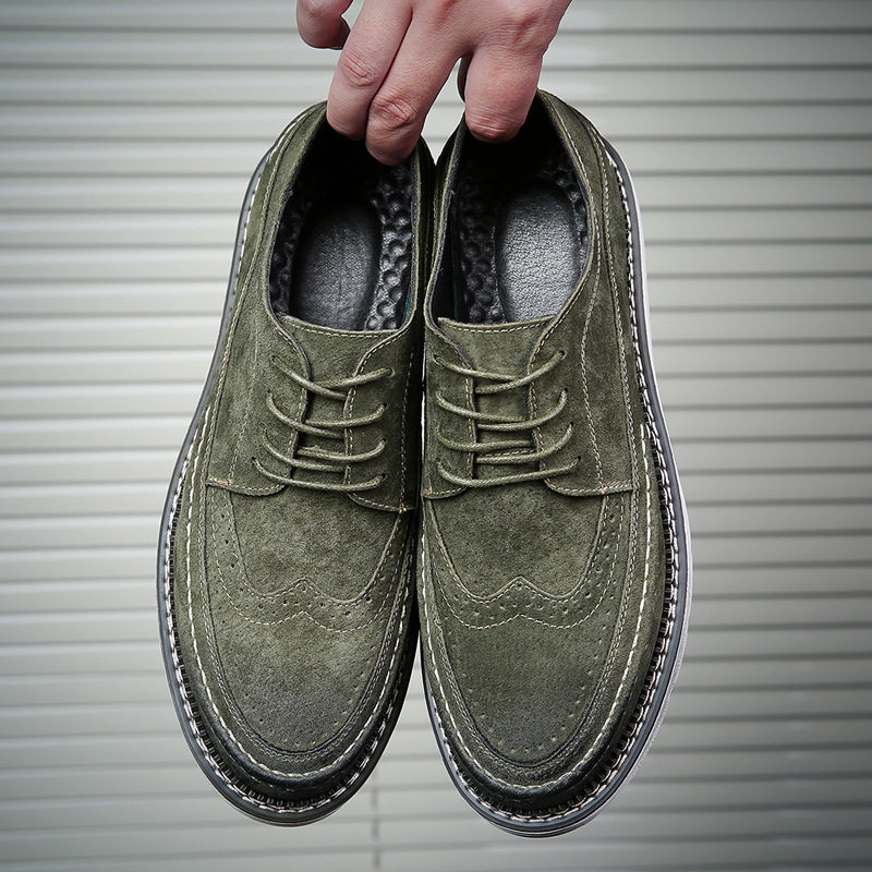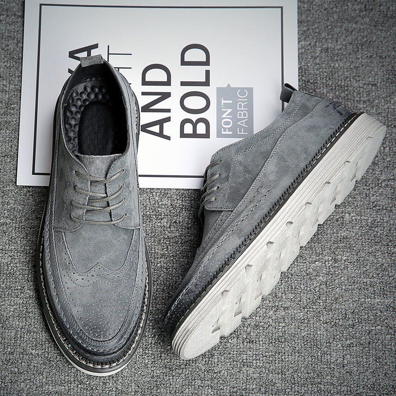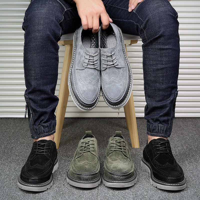 Retro trendy men's European and American fashion thick-soled leather shoes casual round toe brogue heightened carved leather shoes Martin shoes men's shoes