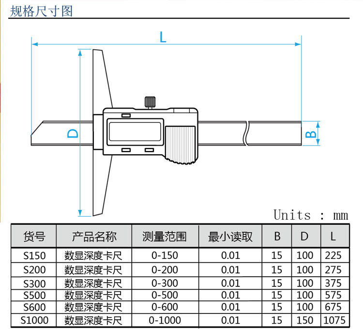 Manufacturer Straight for West Count Depth Calliper Electronic Depth Scale Depth Ruler 0-150 200300500
