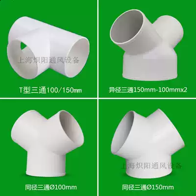 New Air dressing room bathroom tyrant fan exhaust pipe three-way connector Hood tube Y-shaped plastic bifurcation interface 100