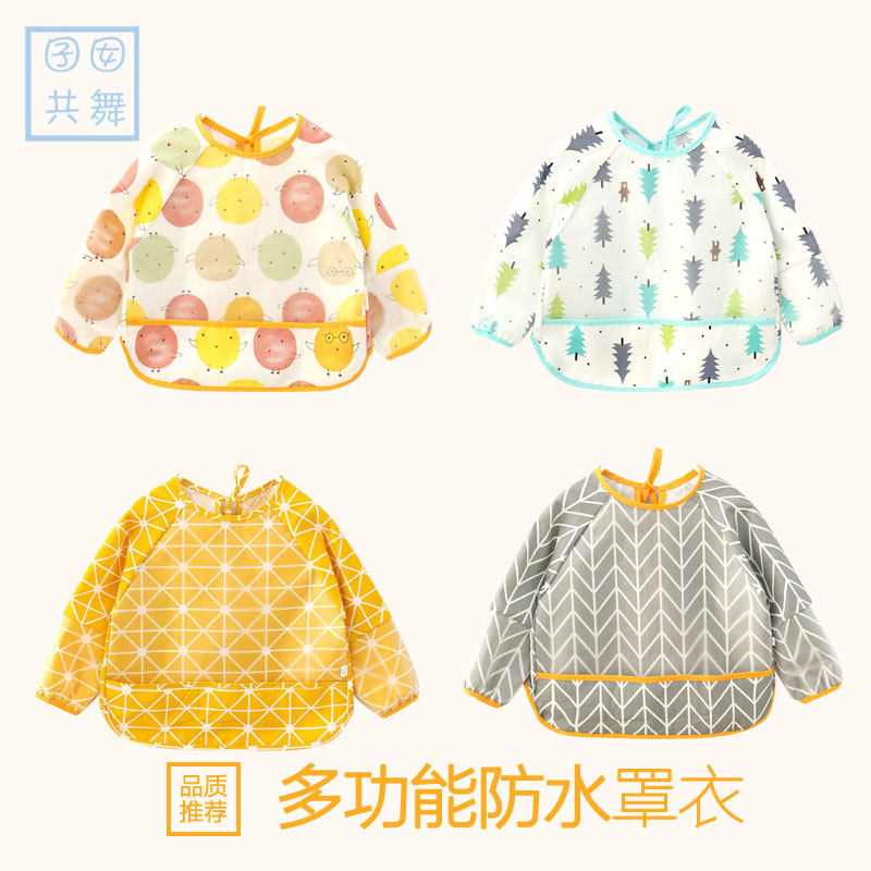 Baby waterproof hood children Anti-wearing clothes Baby eating clothes Hood Hood children Long sleeves Eating Apron Girls Apron Spring Autumn