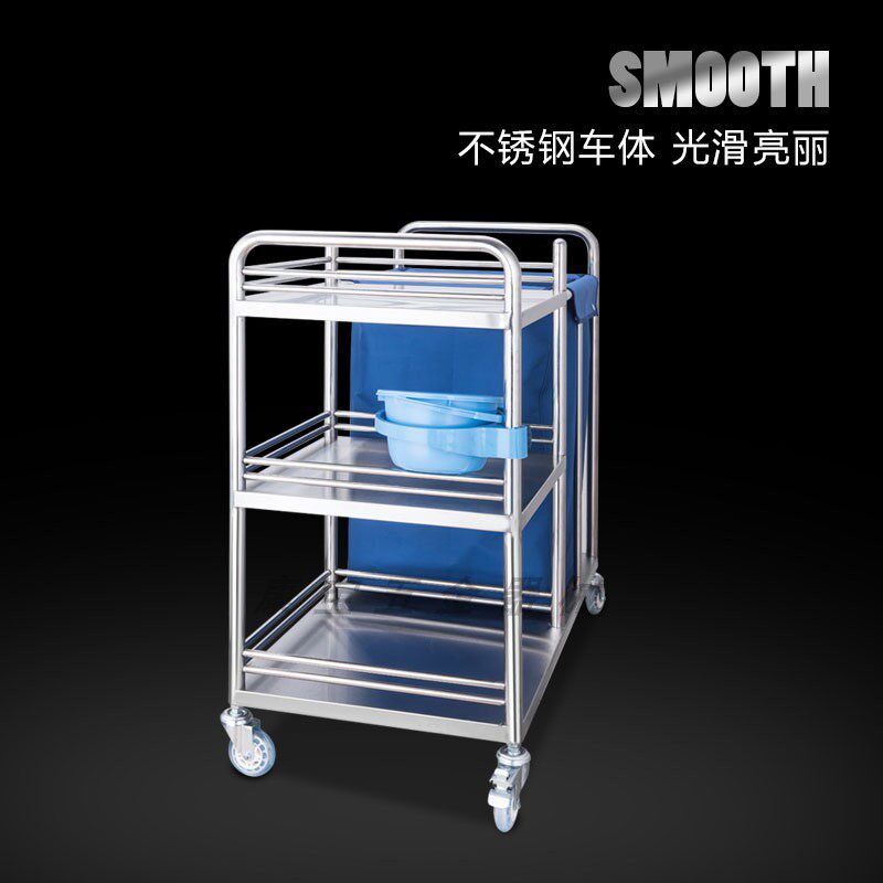 Stainless steel trolley nursing car Three-layer nursing car Luxury dirt car Hospital morning care car Garbage truck quilt car