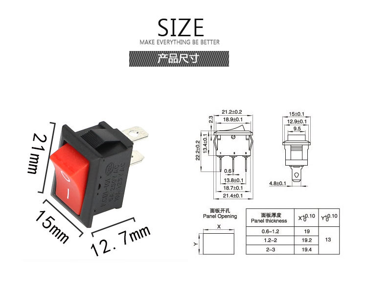 Rocker switch water dispenser switch accessories electronic scale switch KCD1-101 Black 2 feet 2 gears 6A 250V