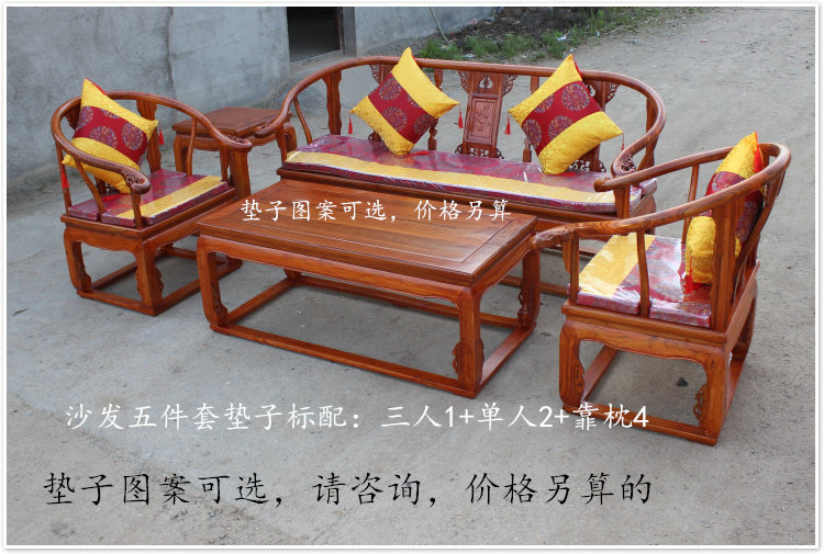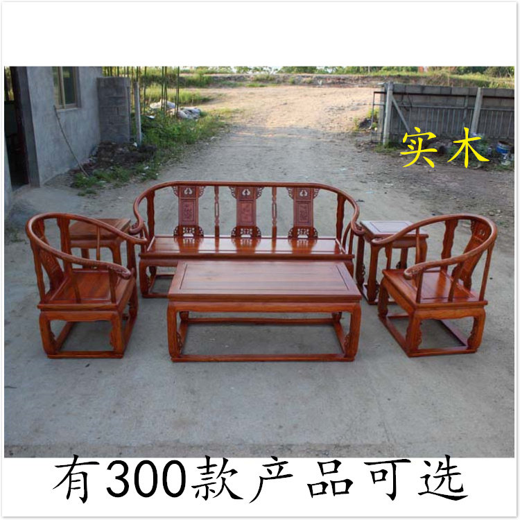Solid wood palace chair five-piece set Chinese style living room sofa circle chair Taishi chair coffee table table whole house combination small apartment