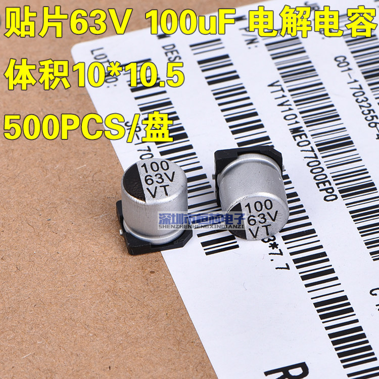 Whole price SMD aluminum electrolytic capacitor 63V 100UF volume 10*10 5mm 10x10 500 pieces in a plate