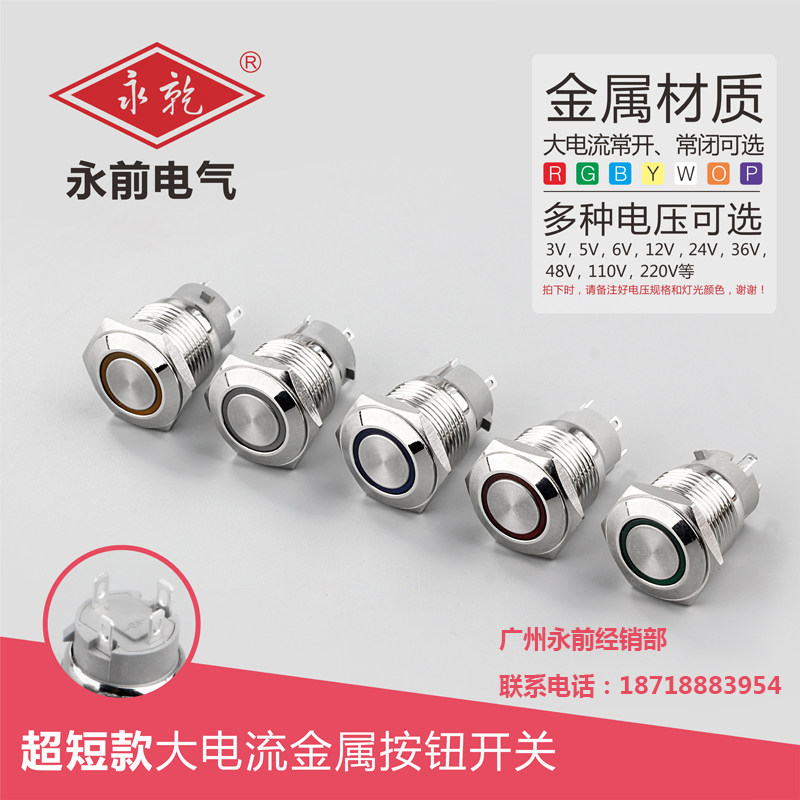 16 19 22MM10A high current short metal push button switch self-locking self-healing with lamp waterproof start