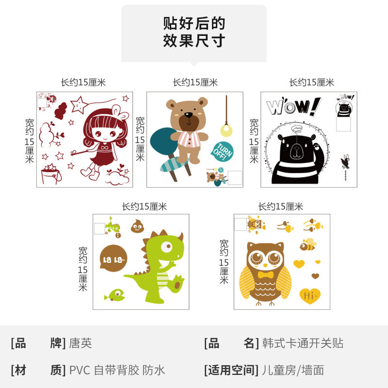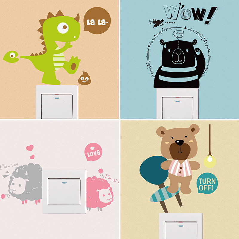 Cartoon Animal Fun Water Glass Decoration Switch Stick Fridge Overall Cabinet Stickers Han Style Bedroom Socket Protective Sleeve Stickler