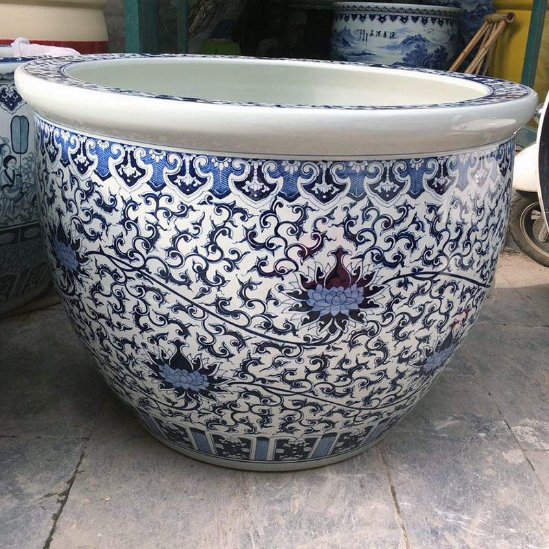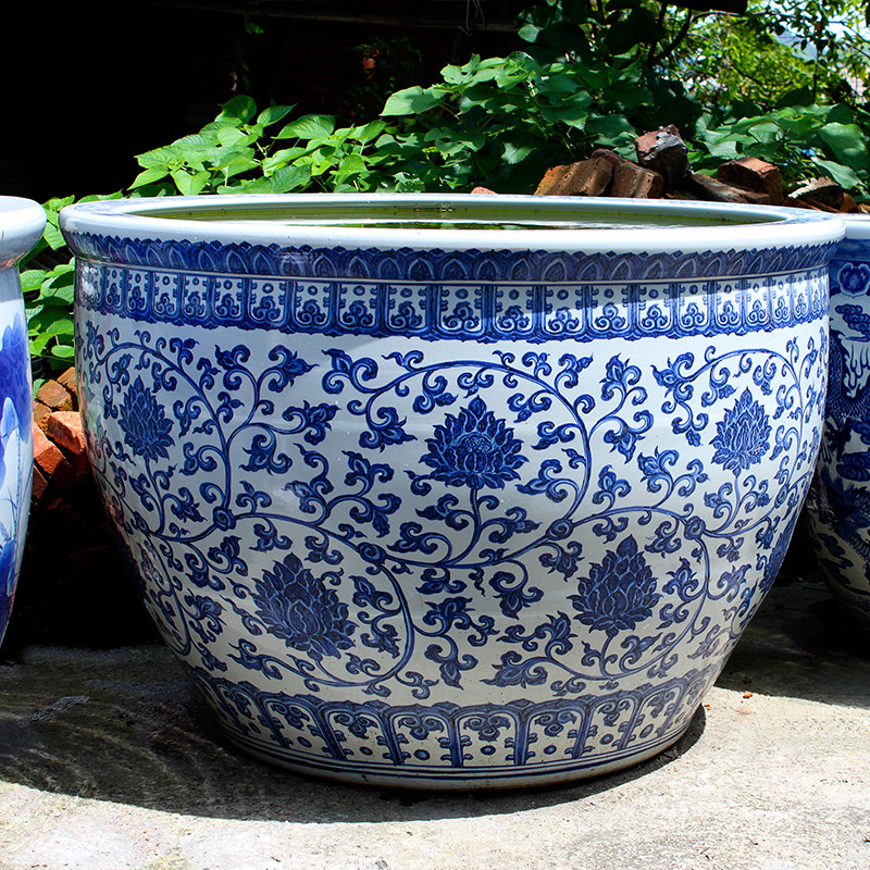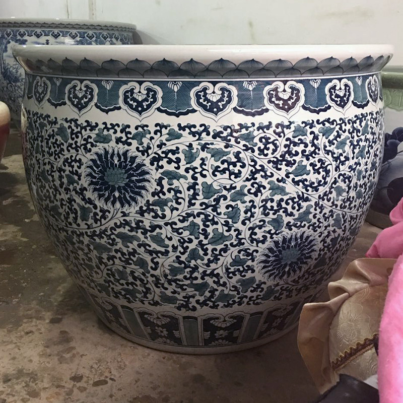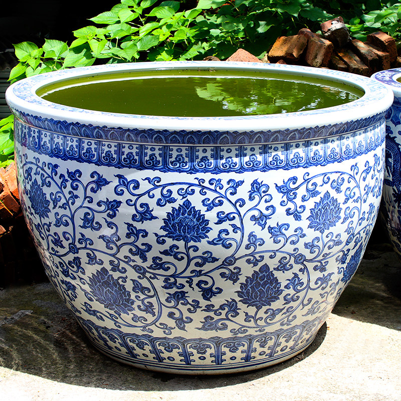 Ceramic Fish Tank Brocade Carp Flowers Green Flower Vat large size Feng Shui Courtyard Swing porcelain cylinder Extra Large fish basin