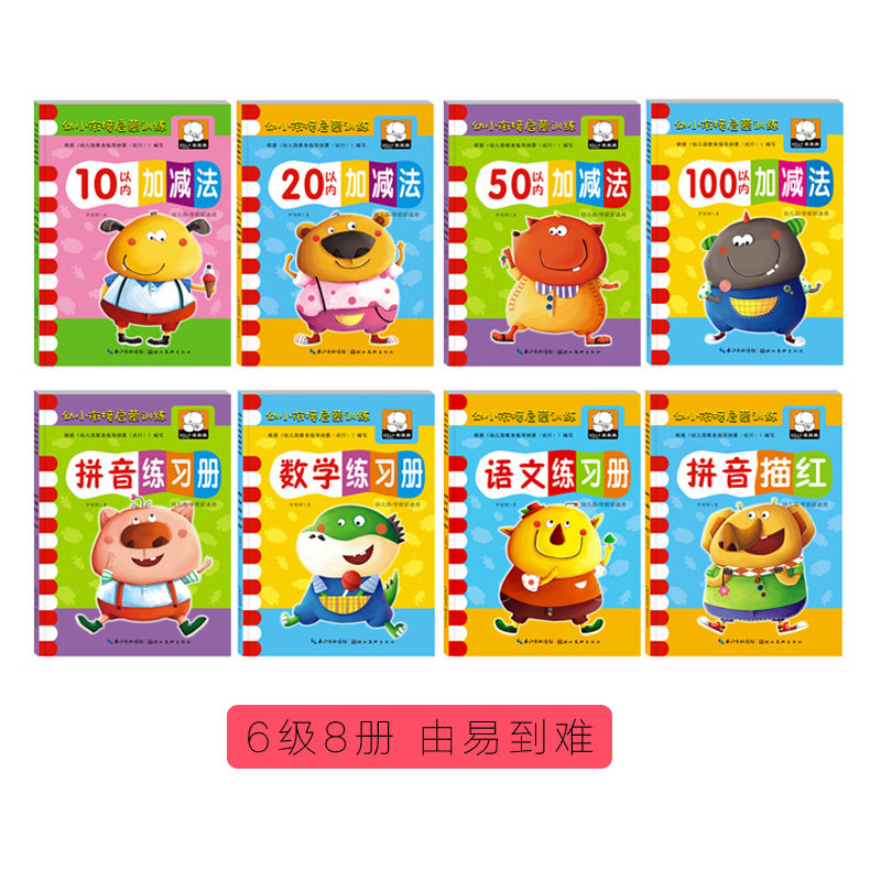 A full set of 8 volumes of Pinyin textbooks, early teaching books, children's books, kindergarten textbooks, preschool textbooks, large classes, first grades, baby early teaching books, addition and subtraction within 10 every day
