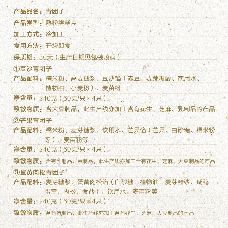 1 box of green bean paste (free 1 box of bean paste) 1 box of mango green ball (free 1 box of mango) 1 box of egg yolk meat floss (free 1 box of egg yolk meat floss) 2 boxes of red bean paste (free 2 boxes of mango) Mango