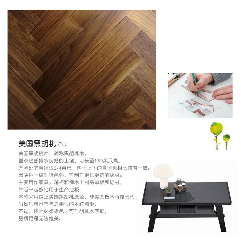 Beijing Home Survey and Installation of Three-layer Solid Wood Floor Warming A Pineapple Black Walnut Simple Hingbone Spelling 00018