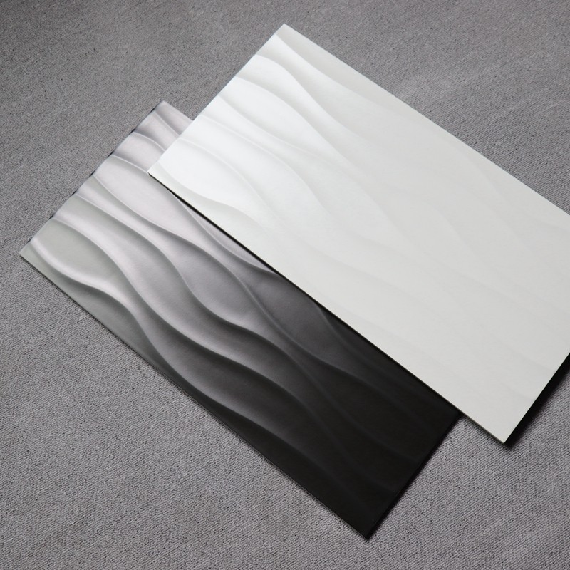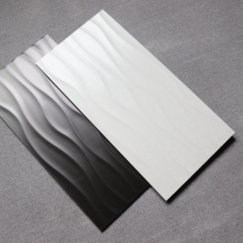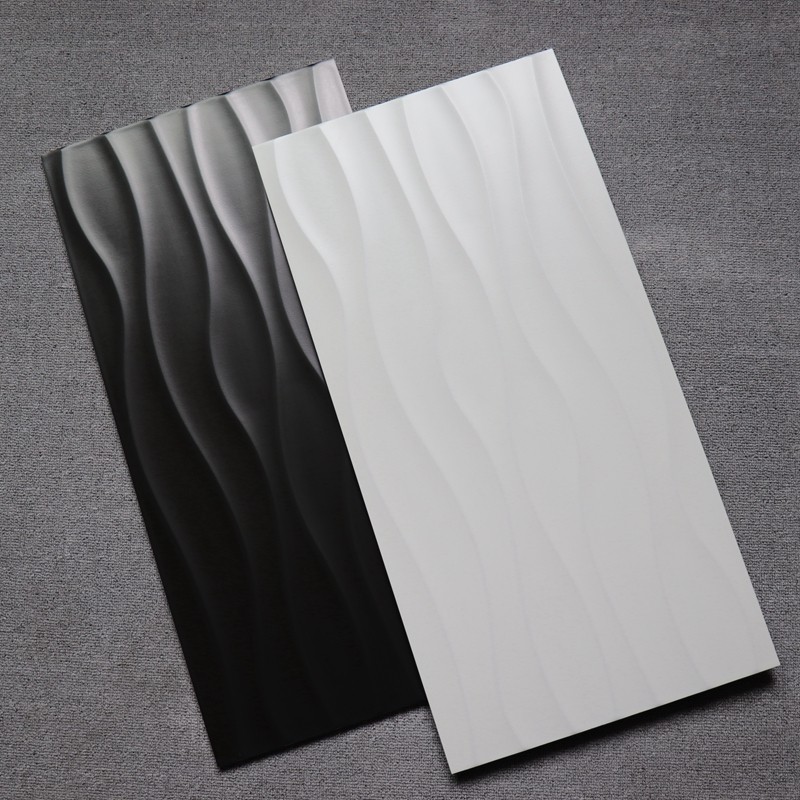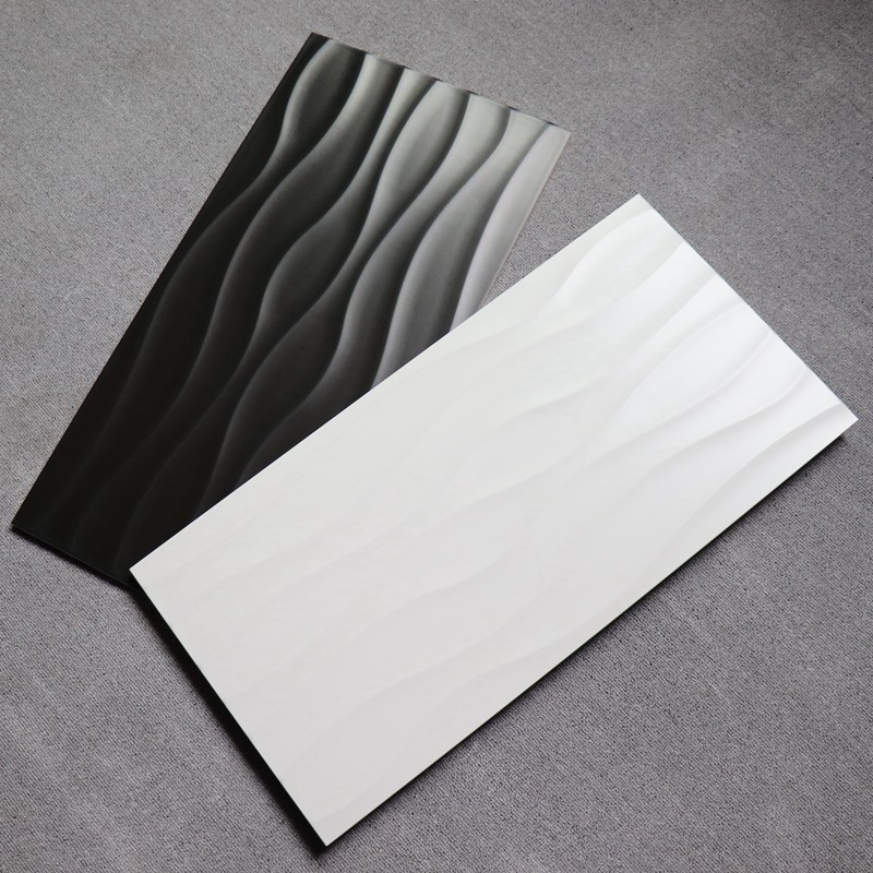 Foshan high-quality bump wall brick indoor living room non-slip dirt-resistant brick black and white strip line bright wall brick 300x600sy